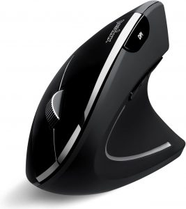 Ratón inalámbrico con un diseño vertical que promueve la posición natural del apretón de manos para evitar la torsión del antebrazo para menos tensión muscular y una mejor postura. Está equipado con tres métodos de conexión inalámbrica (inalámbrico 2.4 G, Bluetooth 5.0 y Bluetooth 3.0), se puede conectar a tres dispositivos diferentes que soportan las conexiones inalámbricas enumeradas. Con 3 niveles de DPI ajustables del 800/1200/1600 y compatible con Windows OS, Linux Ubuntu 16.04, Chromebook, iPadOS, Android, Amazon Fire Tablet.