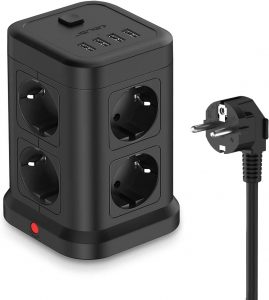 Esta regleta USB con 8 Tomas (3680 W/16 A) y 4 Puertos USB con el cuerpo cuadrado en forma de cubo y las esquinas redondeadas hacen que la unidad sea súper compacta y elegante, ahorrando hasta un 40% de espacio en comparación con una regleta 8AC normal. Además, cuento con un protector contra sobretensiones de 350 julios y un protector de sobrecarga de CA de 16 A que protegen tus dispositivos de picos de tensión.