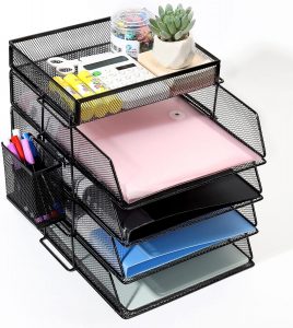 Con 4 bandejas para que guardes documentos, bolígrafos o tu material de oficina, ya no tienes excusa para que tu escritorio sea el chiste de tu oficina o de tu casa. Está construida con rejilla negra de acera, muy fácil de montar y de configurar.