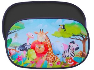 Los niños se suelen aburrir en los viajes y sobre todo si les da el sol en la cara. Con la ayuda de este parasol con protección UV y animados dibujos de jirafas, elefantes y leones, no prometemos que estén callados todo el viaje, pero no les molestará el sol y puede que hasta se diviertan con los animalitos de su ventana.