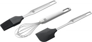 Los utensilios de cocina de silicona son ideales para sartenes antiadherentes y son resistentes al calor. Este juego de herramientas de cocina de 3 piezas combina la belleza del acero inoxidable cepillado 18/10 con una funcionalidad perfecta y elegante. Este set incluye: brocha para hornear, espátula y batidor
