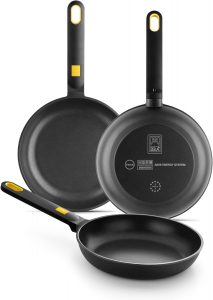 Las sartenes antiadherentes son ideales para cocinar con menos aceite y facilitan la limpieza. Este juego de 3 sartenes de tamaños 20cm, 24cm y 28cm que son aptas para cualquier tipo de cocinas y de inducción te convertirás en un experto en el huevo frito y otros platos.
