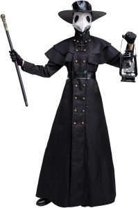 Los médicos de la peste llevaron una máscara de pico inconfundible en el tratamiento de pacientes de la peste negra, este disfraz es un recuperación realista. Con un revestimiento de tela negra y accesorios de vinilo, este conjunto crea un efecto de disfraz terrorífico.
